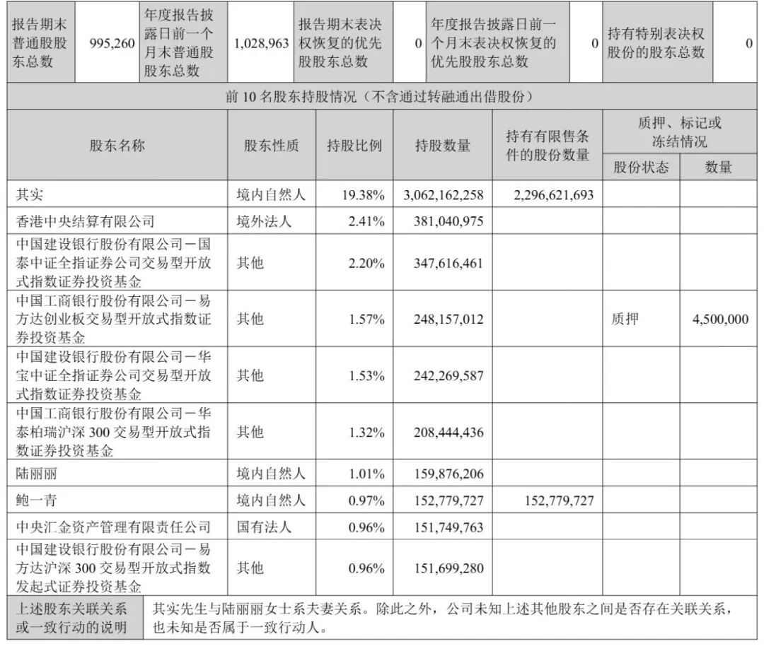 其实的妻子陆丽丽持股为1.01%,鲍一青持股为0.97%,中央汇金资产管理有限责任公司持股为0.96%。